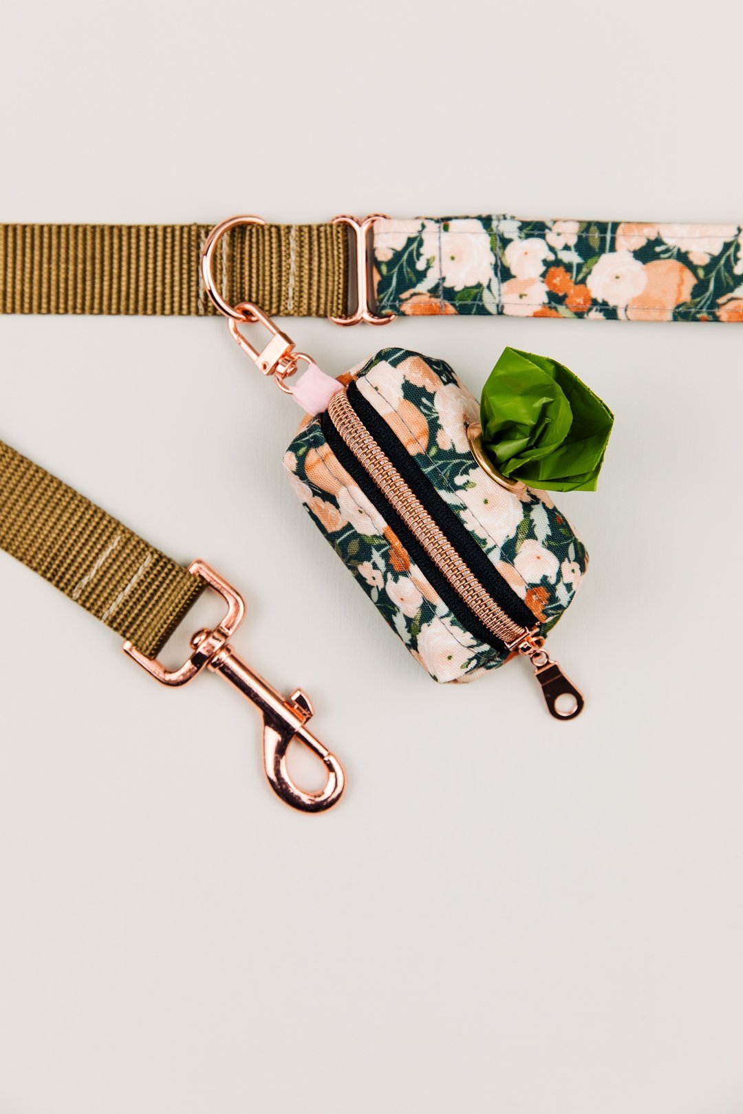 WALK IN THE BARK CHARCOAL FLORAL PRINT DOG COLLAR WITH ROSE GOLD BUCKLE