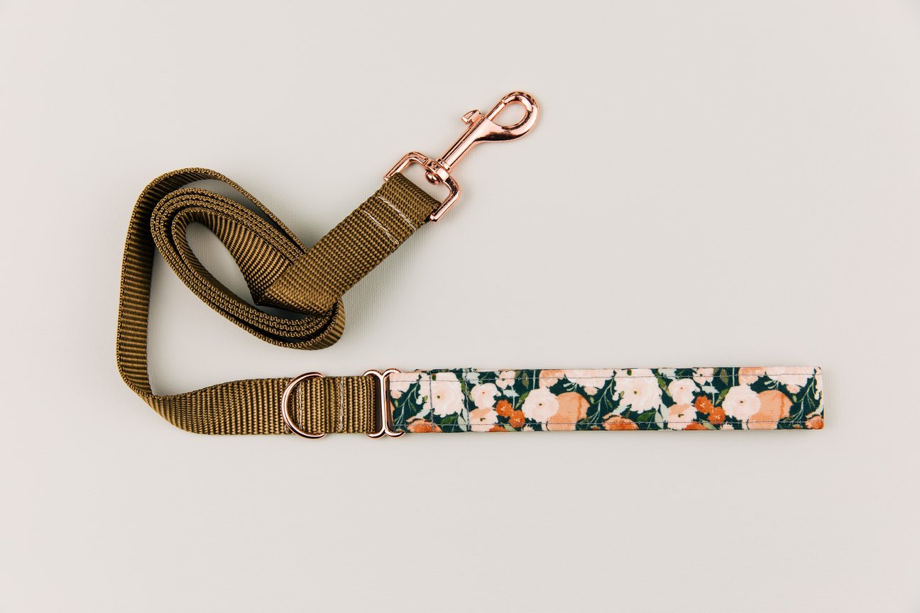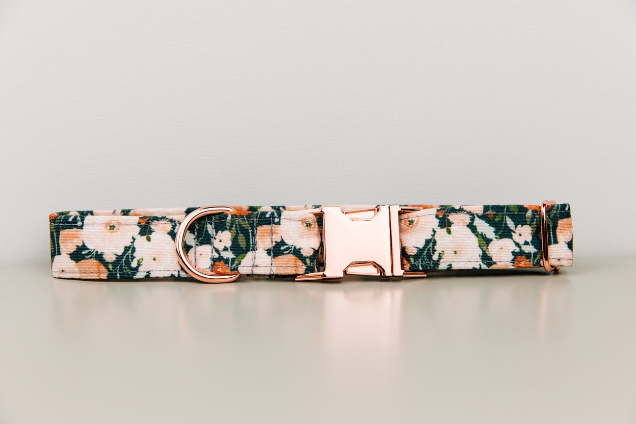 Charcoal Floral Print Dog Collar w/ Rose Gold Buckle