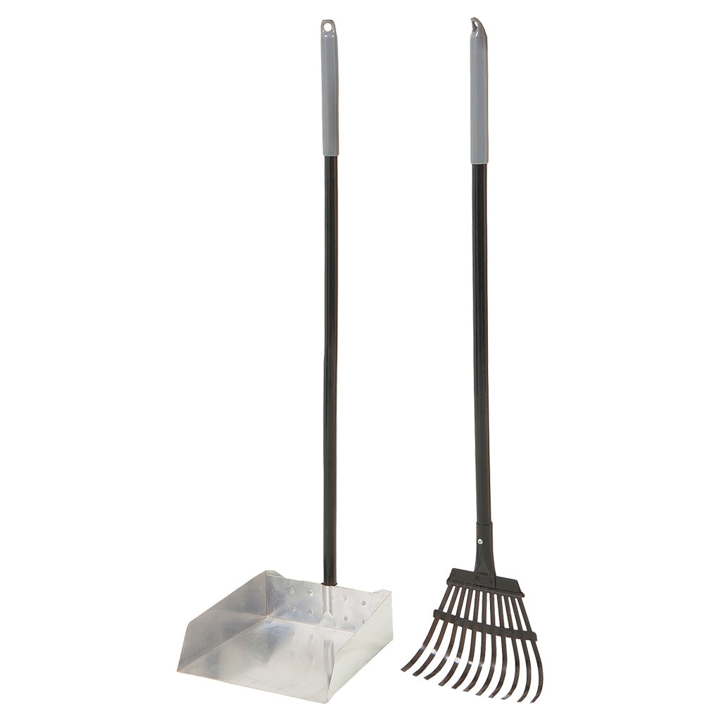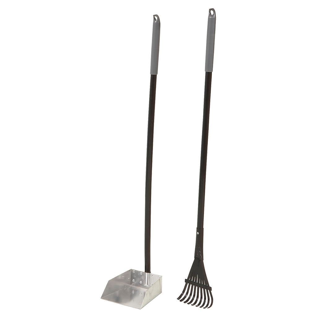 The Petmate® Clean Response® Aluminum Rake & Pan makes backyard clean up a snap. Pet parents love the 38" handle with over-molded grip for ease of use. This rake and pan combo is easy to hose off and clean up after use. Spend less time cleaning up and more time with your furry friend!