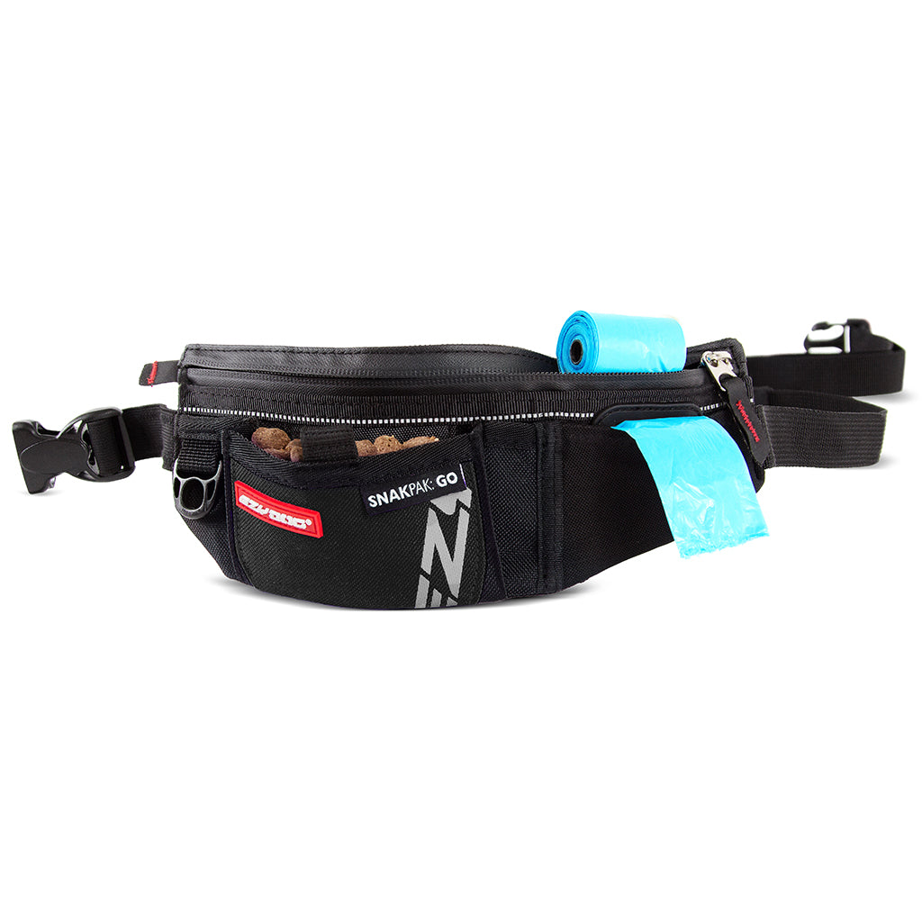 The EzyDog SnakPak dog treat bag is the perfect magnetic treat bag to make training your dog a breeze. The quick twin magnetic closures provide fast and simple access to rewards. These dog treat bags offer 2 systems of attachment - twin belt hooks to stabilize the bag at your waist or use the adjustable webbing waist strap to secure around your body. This easy to access front waterproof zip closure is perfect for storing keys, your smart phone or money. Make cleanup a breeze with the innovative pull-up liner that can be wiped clean after use.