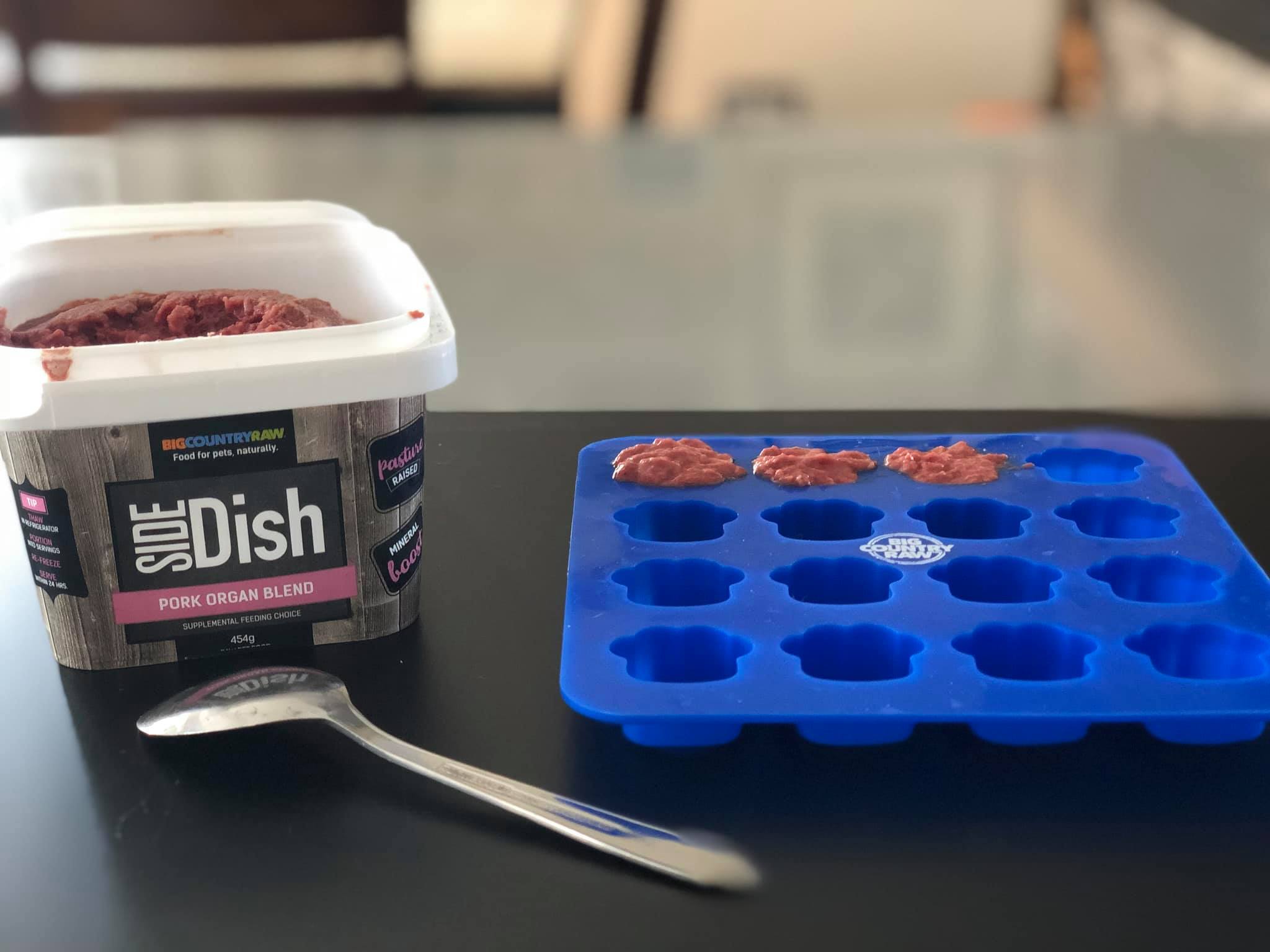 Add frozen treat to your dog or cats daily meals or as a treat. A great way to add a side-dish to every meal.