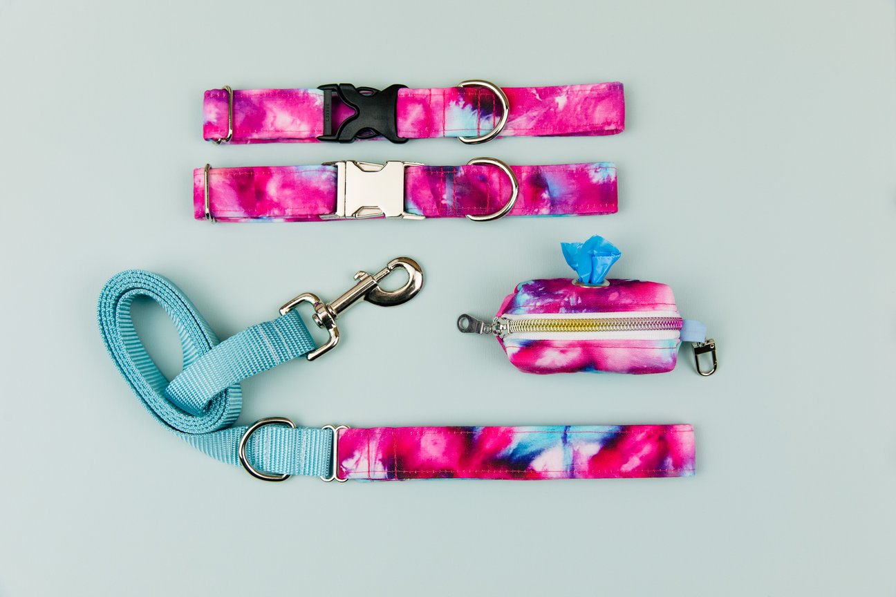WALK IN THE BARK FUCHSIA TIE DYE COLLAR WITH SILVER BUCKLE