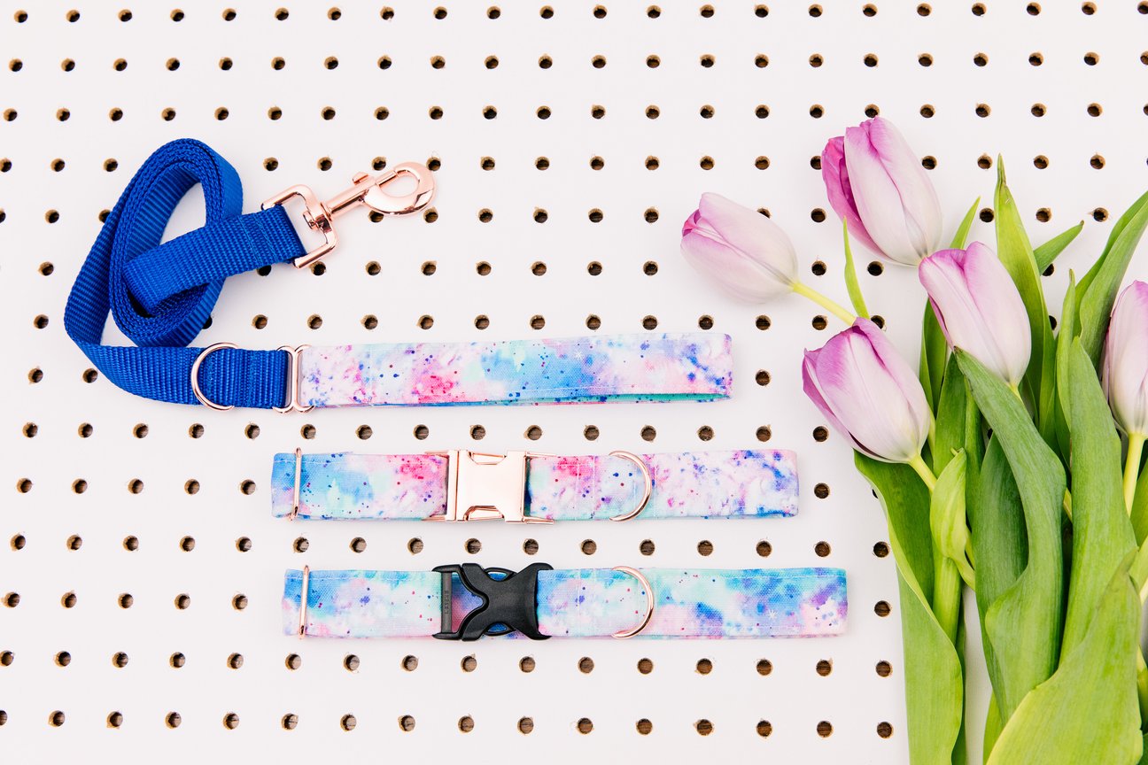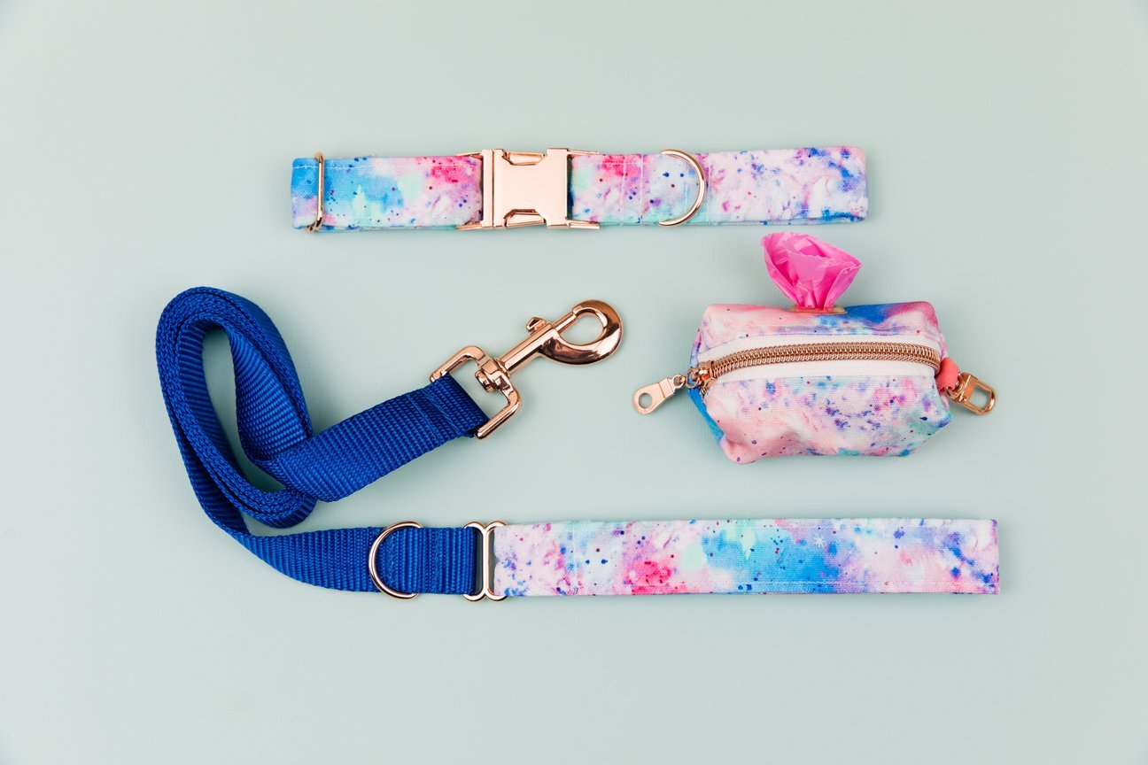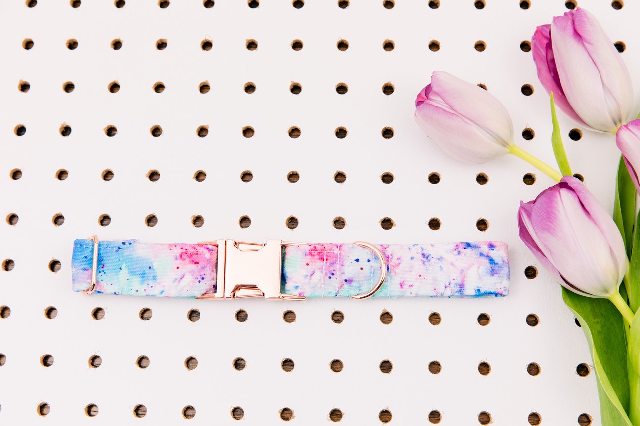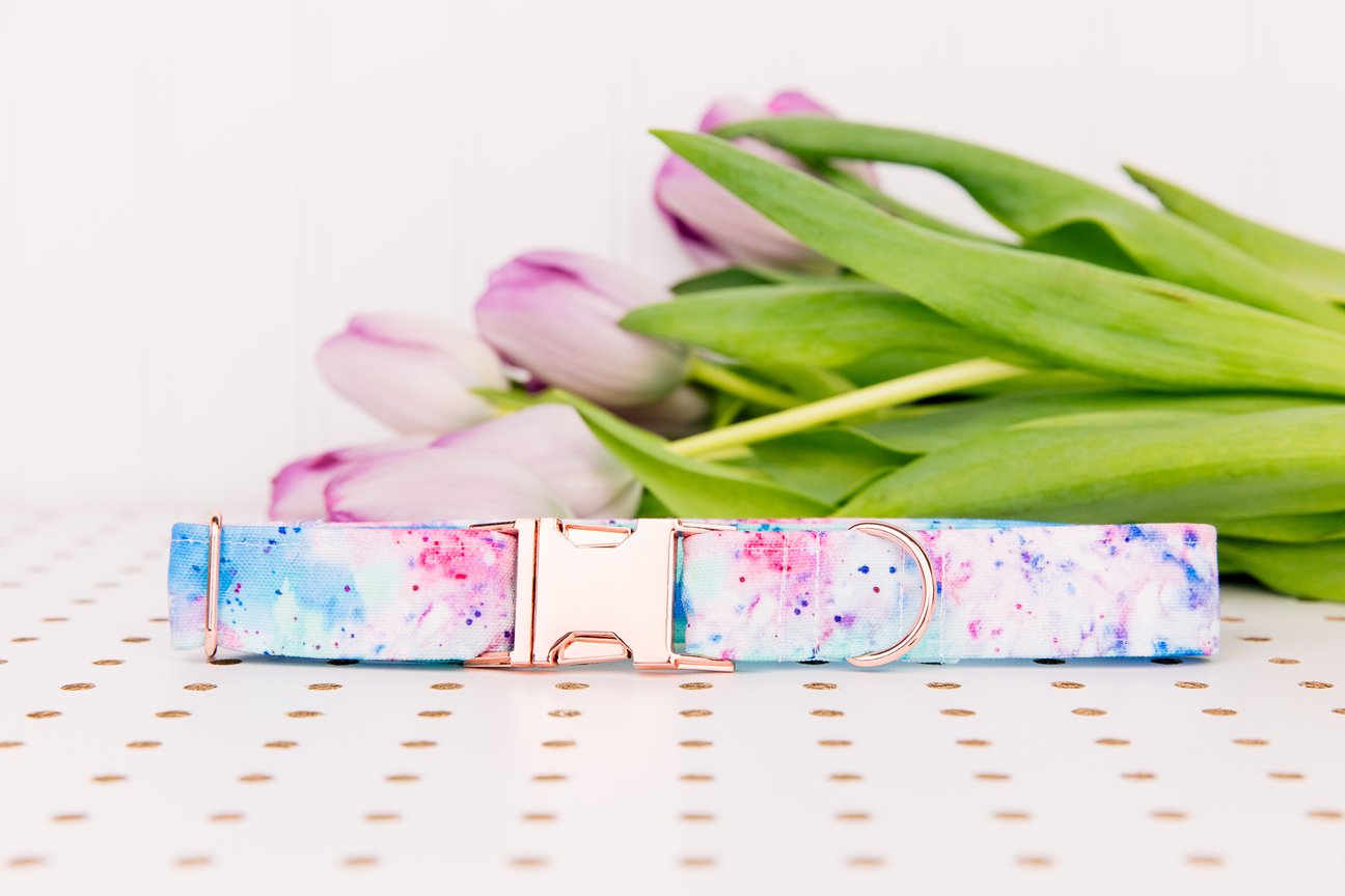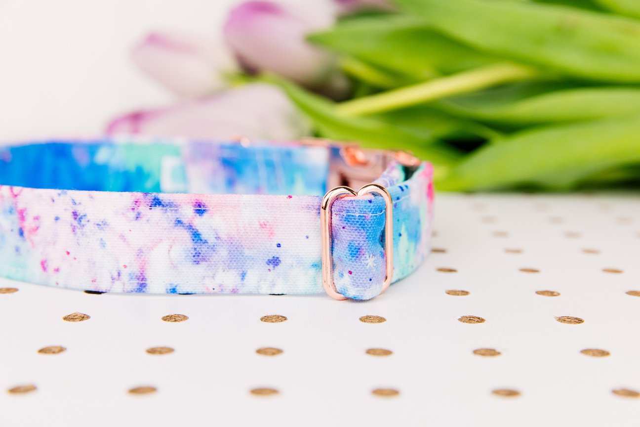 WALK IN THE BARK TIE DYE SPLATTER COLLAR WITH ROSE GOLD BUCKLE