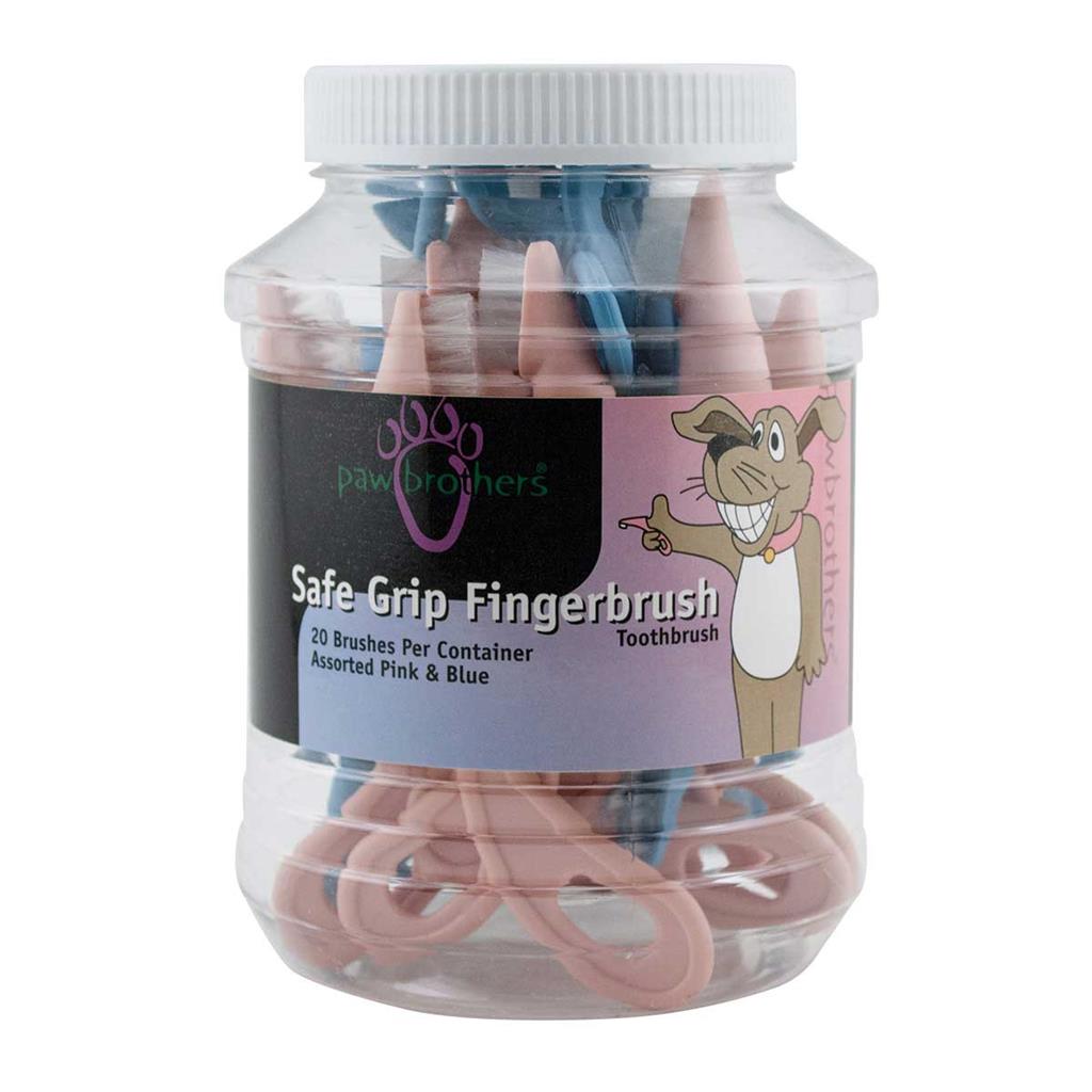 Paw Brothers Safe Grip Finger brush Toothbrushes have a specially designed handle that allows the finger brush to fit comfortably in the had and allows easy brushing without the risk of chocking.