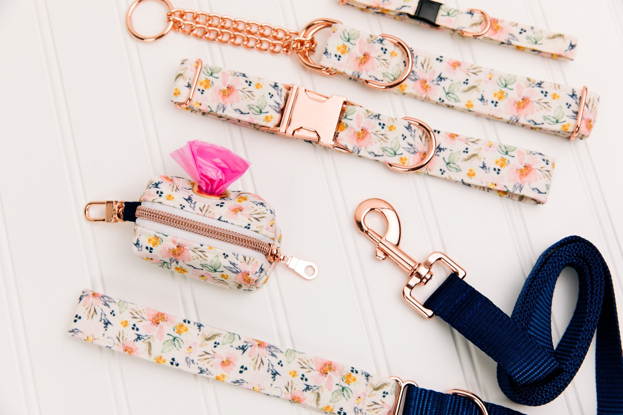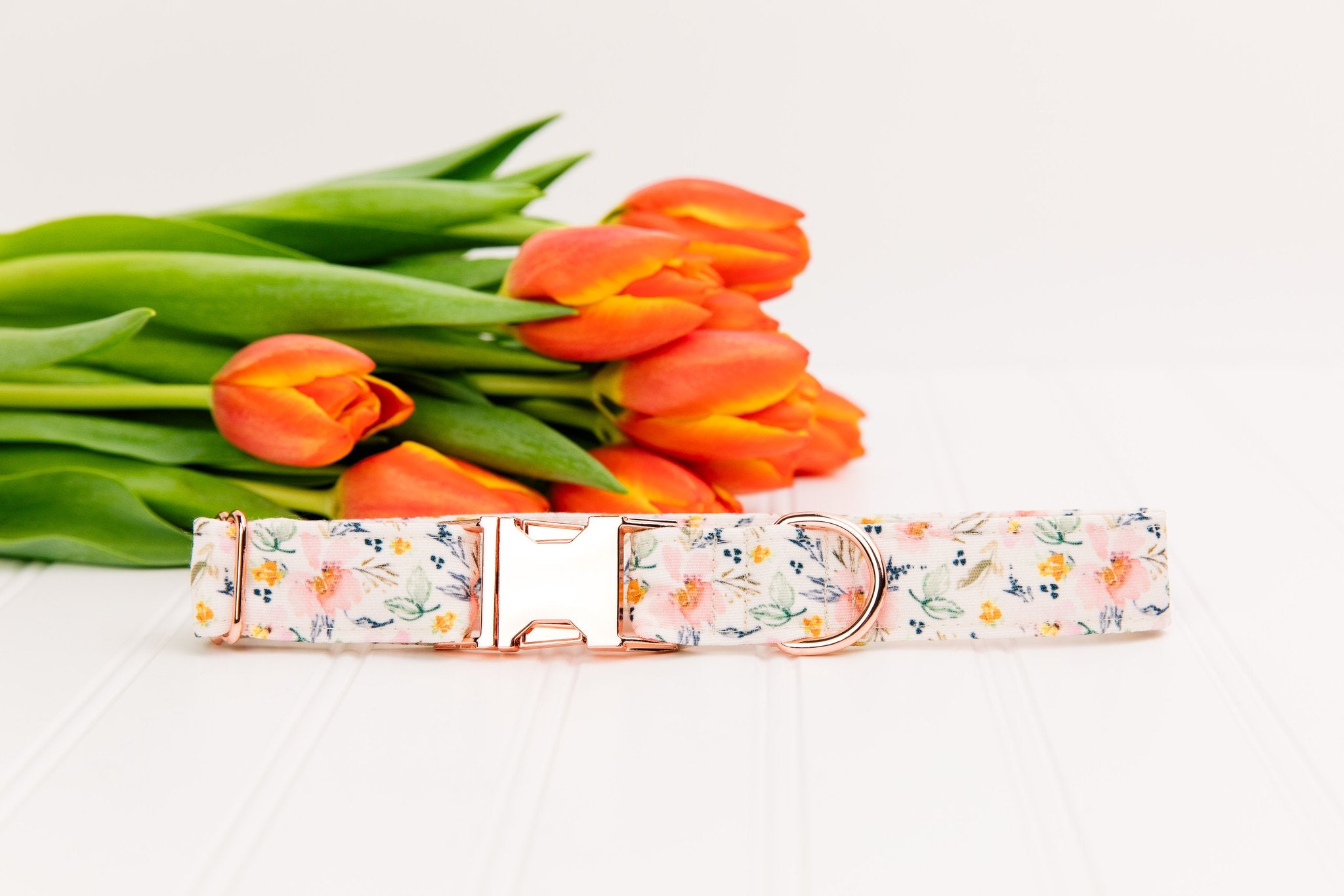 WALK IN THE BARK WATERCOLOUR FLOWERS DOG COLLAR WITH ROSE GOLD BUCKLE