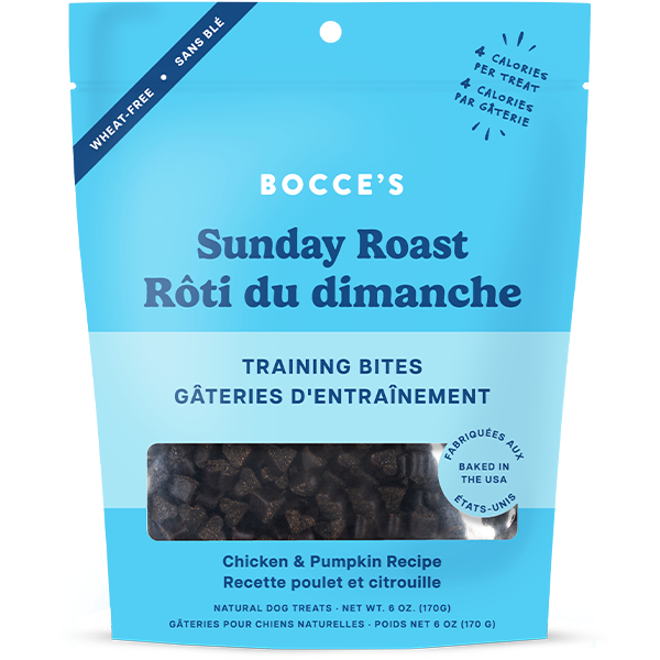 Bocce's Bakery Sunday Roast Training Bites are made to enjoy every day. These perfectly sized training bites are baked using 100% real ingredients including Chicken & Pumpkin. So whether your dog is being rewarded for sitting properly, posing for Instagram, or simply in need of a little daily bribing, they've got you covered. Because training can mean lots and lots and lots of treats!