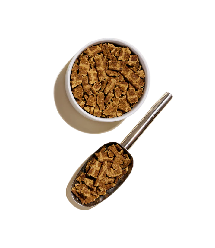 This meaty, jerky-like recipe is gently air-dried at low temperatures to naturally preserve nutrition and mouth-watering flavor. Crafted with 90% Wild-Caught Pollock and G.A.P certified, humanely raised lamb & lamb organs with no antibiotics or added hormones, this recipe is the perfect mealtime alternative for pet parents looking to explore beyond traditional kibble. In addition, bone broth and a superfood blend of non-GMO fruits and vegetables are added to provide a nutrient dense, complete and balanced meal or topper.
