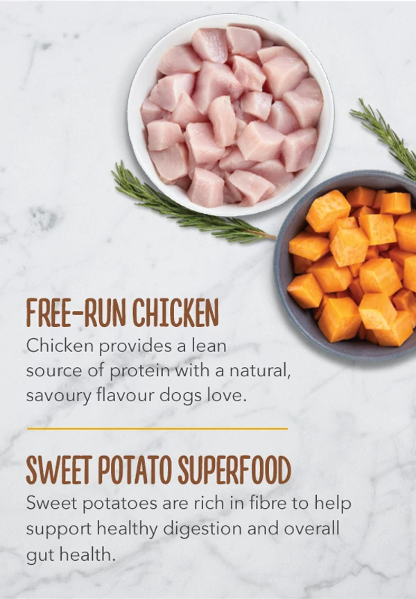 - Inclusions of sweet potatoes are rich in fibre to support healthy digestion and overall gut health.