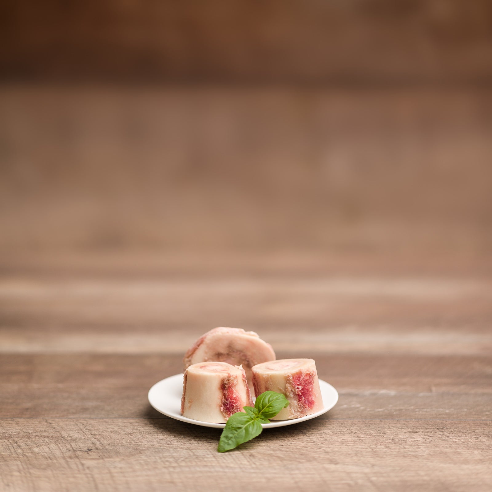 Beef Marrows are the traditional raw chewing bone. A hardened bone packed with rich tasty marrow that all dogs love! Your dog can savour and enjoy this exceptionally long lasting chewing bone for hours. Beef marrows are also excellent at cleaning teeth.