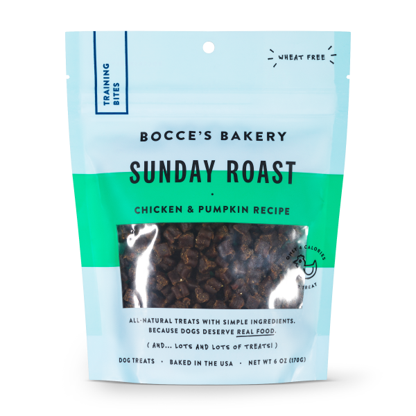 Bocce's Bakery Sunday Roast Training Bites are made to enjoy every day. These perfectly sized training bites are baked in the USA using 100% real ingredients including Chicken & Pumpkin. So whether your dog is being rewarded for sitting properly, posing for Instagram, or simply in need of a little daily bribing, they've got you covered. Because training can mean lots and lots and lots of treats!