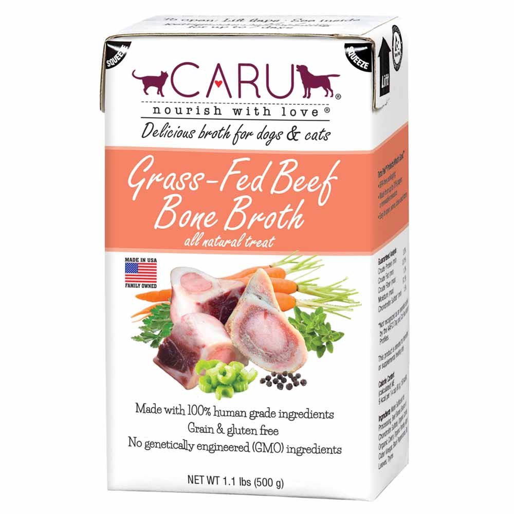 A delicious, naturally nourishing beef bone broth made with 100% human grade ingredients in a human food plant in the USA.  We start with grass-fed and finished beef bones that are antibiotic free with no added hormones. Then we add organic carrots, organic celery and organic parsley. This superpremium broth is prepared especially for pets with no onions, garlic or added salt, preservatives or MSG. Slow cooked 18 to 24 hours, it contains 90% protein on a dry matter basis, nearly twice the protein of bone broths made for people. No wonder it looks, smells and tastes just like homemade!