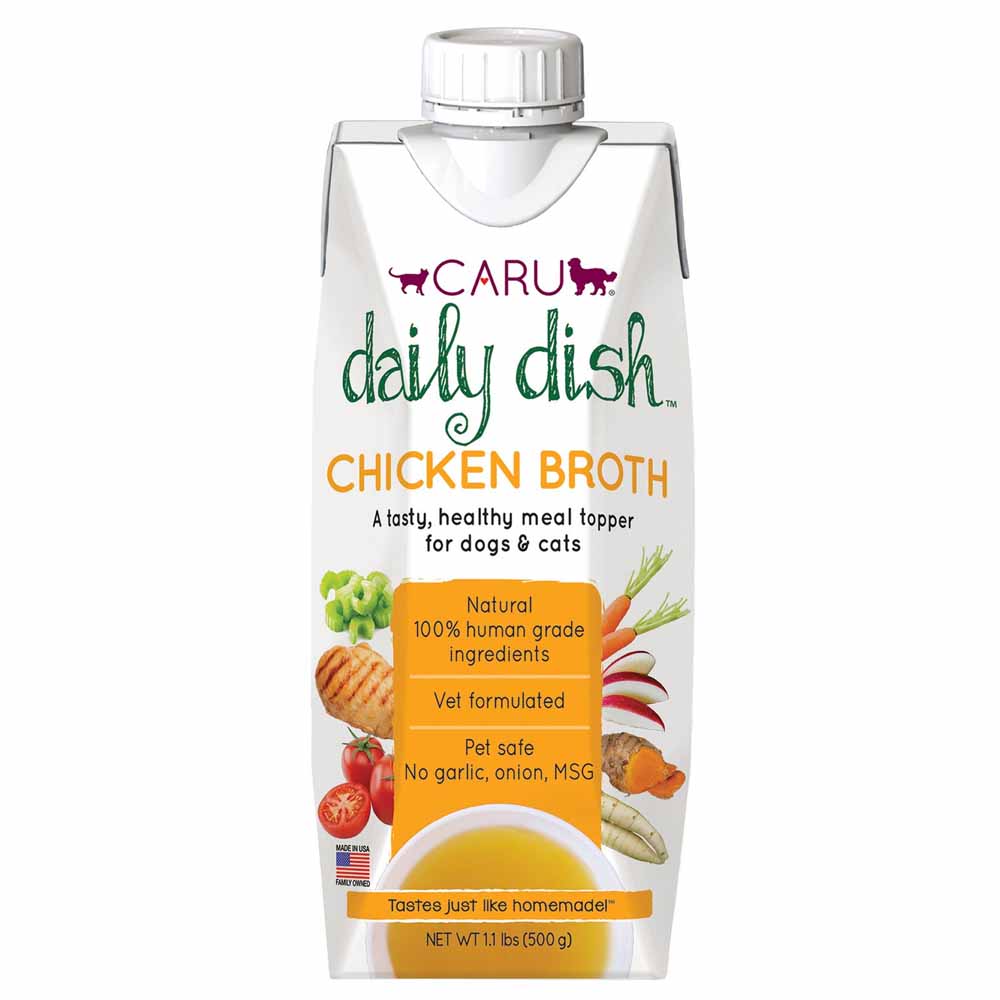A tasty, healthy meal topper for dogs and cats, priced for everyday feeding. Vet formulated and made with natural 100% human grade ingredients in a USA human food plant, without GMO ingredients, onions, garlic, added salt, preservatives or colors. This grain and gluten free broth is thick enough to cling to food. It's ideal for hydrating and enhancing the flavor and aroma of dry kibble, freeze-dried or dehydrated foods. This delicious broth is a great way to encourage dogs and cats to drink more liquid, because it looks, smells and tastes just like homemade.