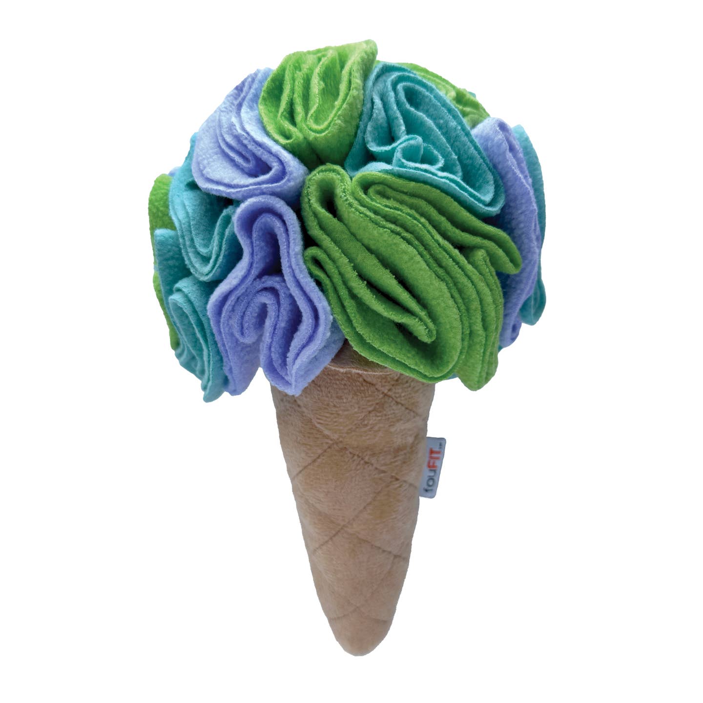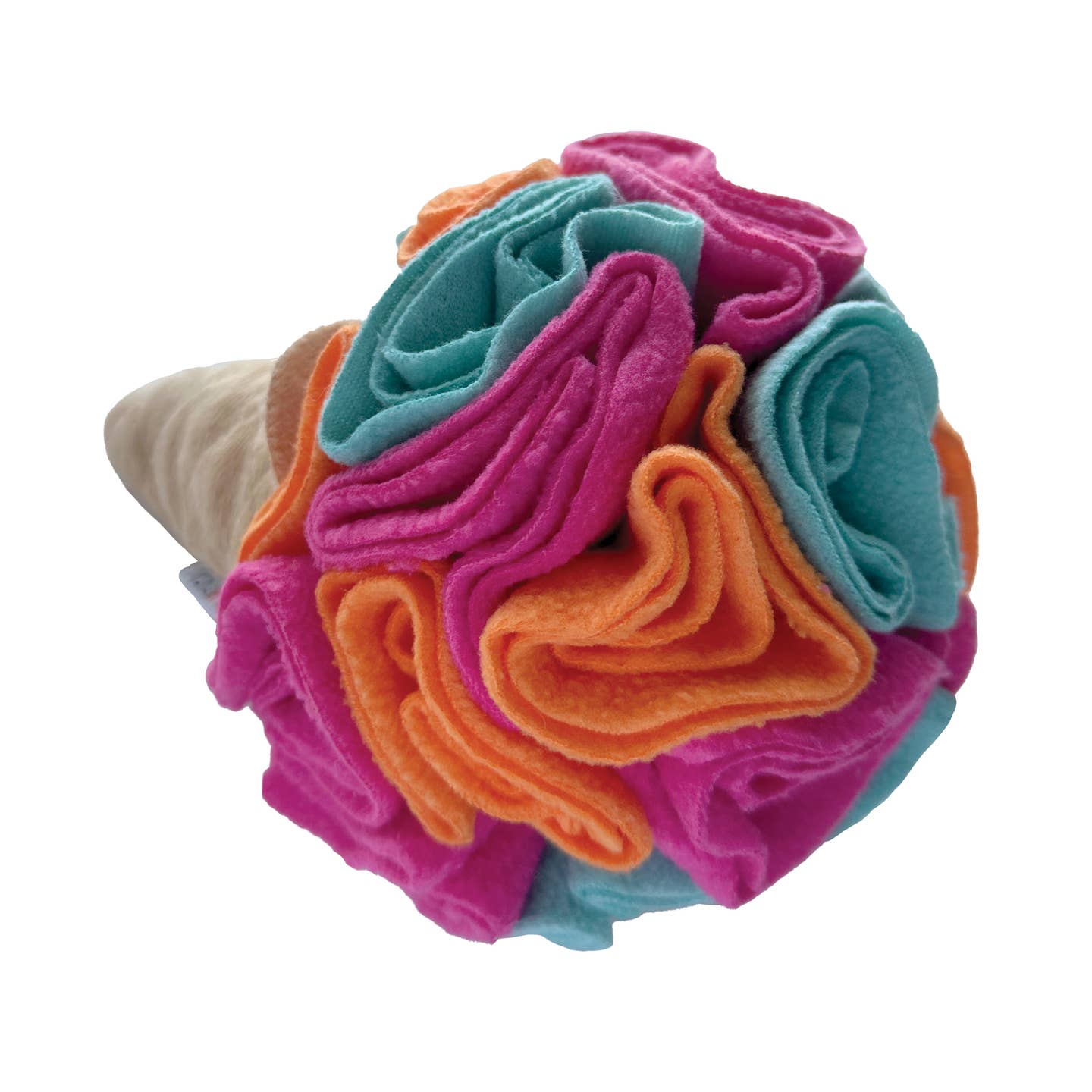 The Hide 'n Seek Ice Cream Snuffle toy looks as delicious as the treats that can hide inside! This colorful and fun nosework toy features layers of fleece you can hide treats or kibble inside for your dog to forage. Each toy also includes a hidden squeaker in the cone for more fun! Enrichment toys help stimulate your dog's senses, and helps curb destructive behavior by keeping them busy and their mind sharp. Ideal for any size dog breed, and gentle chewers.