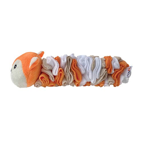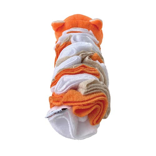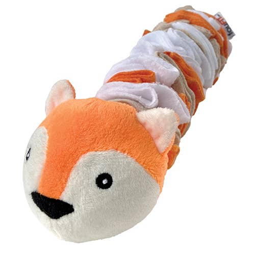 Hide 'n Seek Woodland Snuffle Nosework Toys are perfect for keeping your dog occupied and engaged, while learning how to effectively use their nose and getting rewarded along the way! Hide treats within the fleece layers throughout the toy. Features a hidden squeaker. Helps to relieve separation anxiety and improves your dog's cognition. An interactive and fun toy!