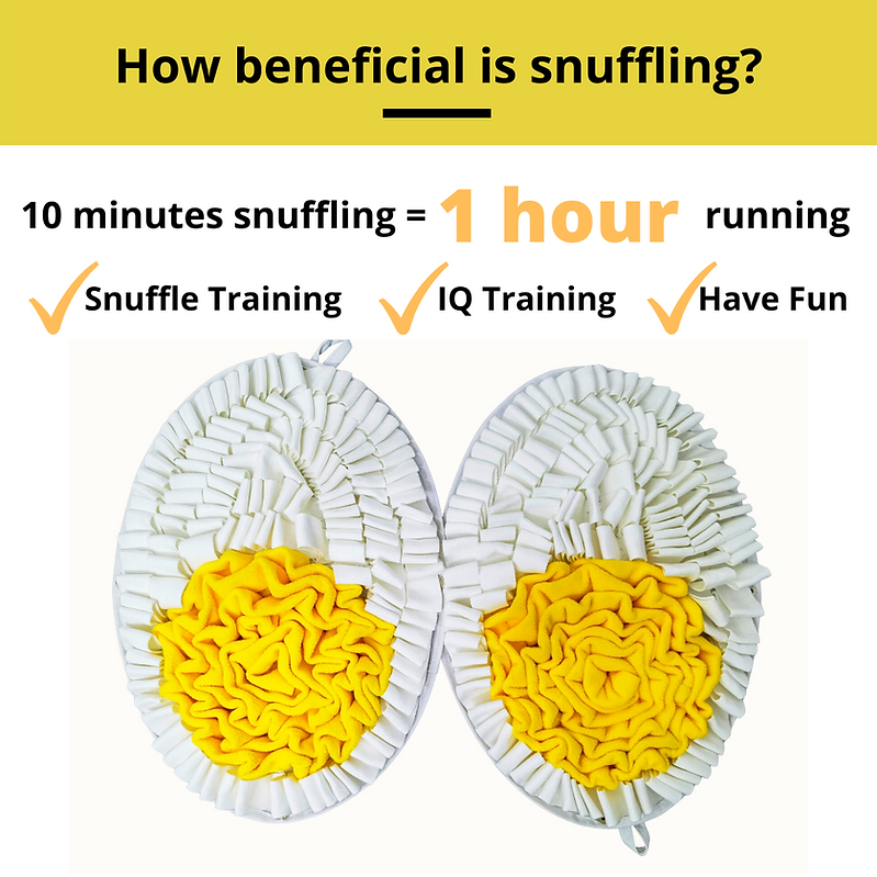 - 10 min of snuffle mat activity is equivalent to 1 hour of running, tires your pet