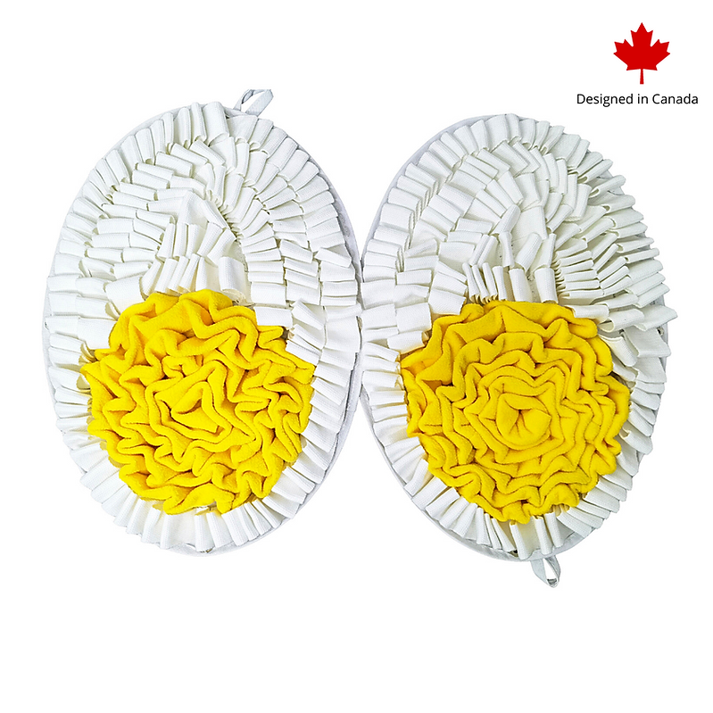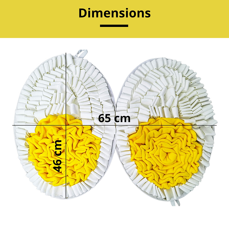 PawzNDogz presents various designs of "Snuffle Mats that will keep your fur baby's brain active and stimulated ! Hide some dry food / treats in the folds of the snuffle mat / toy and watch your dog hunting them by using their "sniffing skills" to locate the tasty stuff. The soft yet durable machine-washable snuffle mats / toys have multiple level of challenges embedded in the designs to tire your pup / dog absolutely by burning their energy via sniffing. These snuffle mats not only are energy consumers and boredom-killers, but also function as slow feeding toys to prevent your dog from gulping down food in a jiffy. The slow feeding process reduces the speed of eating by 5x - 10 x and 10 minutes of snuffling is approx equivalent to 1 hour of running !