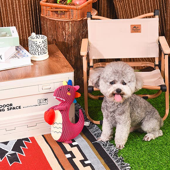 Ready to travel back in time? Your puppies will love creating thrilling action and adventure with Dinosaur Land. Each dinosaur is made of tough sandwich mesh fabric and features embroidered realistic details for countless playtime. Built-in squeaker guarantees to surprise and delight your little adventurers.