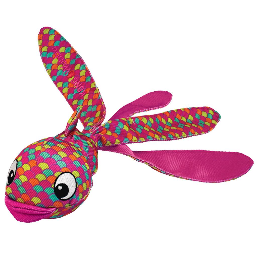 The new KONG Wubba Finz has long floppy tails that make it easy for tugging and super fun for your dog to shake, satisfying natural thrashing instincts. Two balls inside help KONG Wubba Finz bounce and squeak, extending games of catch and release for tons of healthy, active play. This flying fish is made to soar through the air and launch your dog into a fetching frenzy!