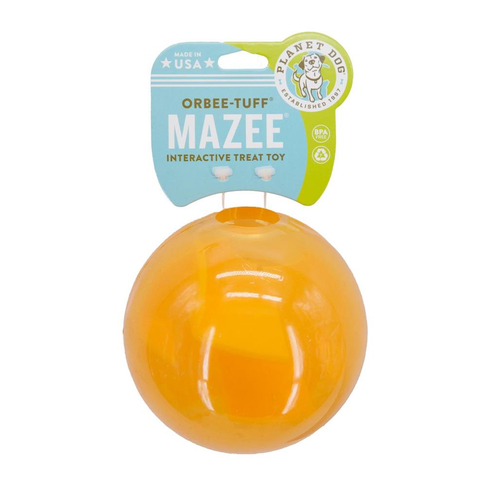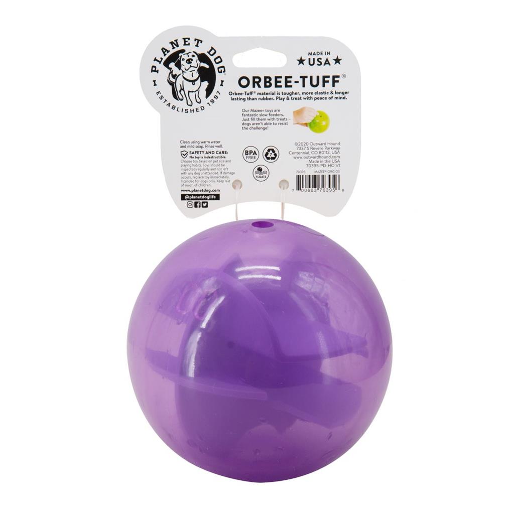 MADE IN USA: Planet Dog's Orbee-Tuff Mazee interactive puzzle ball is made of a plastic interior maze and an outer tinted Orbee-Tuff TPE shell. This dog toy is BPA, lead, and phthalate-free.