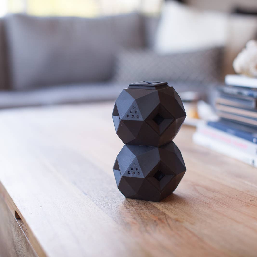 A treat dispensing enrichment dog toy with a modern, modular design. Put treats into the flaps and let your dog toss and roll The Odin to get treats out. Attach 2 or more The Odin toys to keep the toy interactive and change the way your dog interacts with the toy.