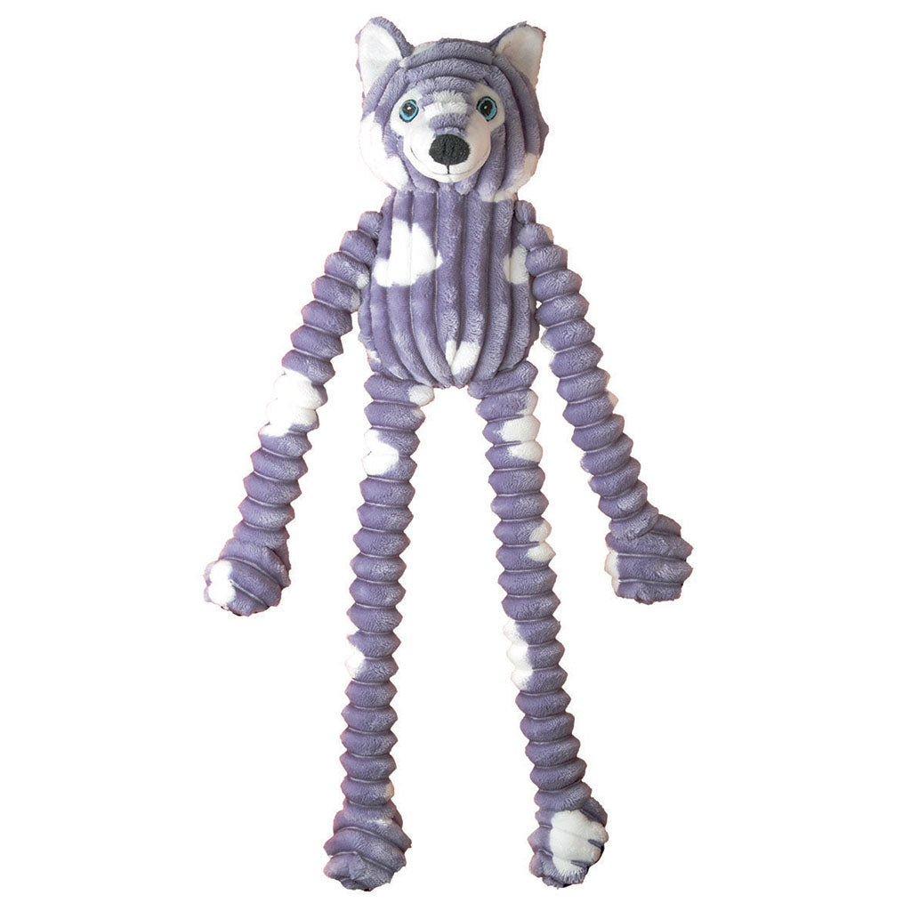 Double-stitched long and floppy arms and legs offer your dog a challenging, playful experience. The wide puffy corduroy fabric is buttery soft. It's perfect for for the pups who love to fetch, play tug-o-war or who like to snuggle up with toys. Each toy contains 4 squeakers and a grunter on the inside. The outside material is made of wide puffy corduroy and the fabric is buttery soft.