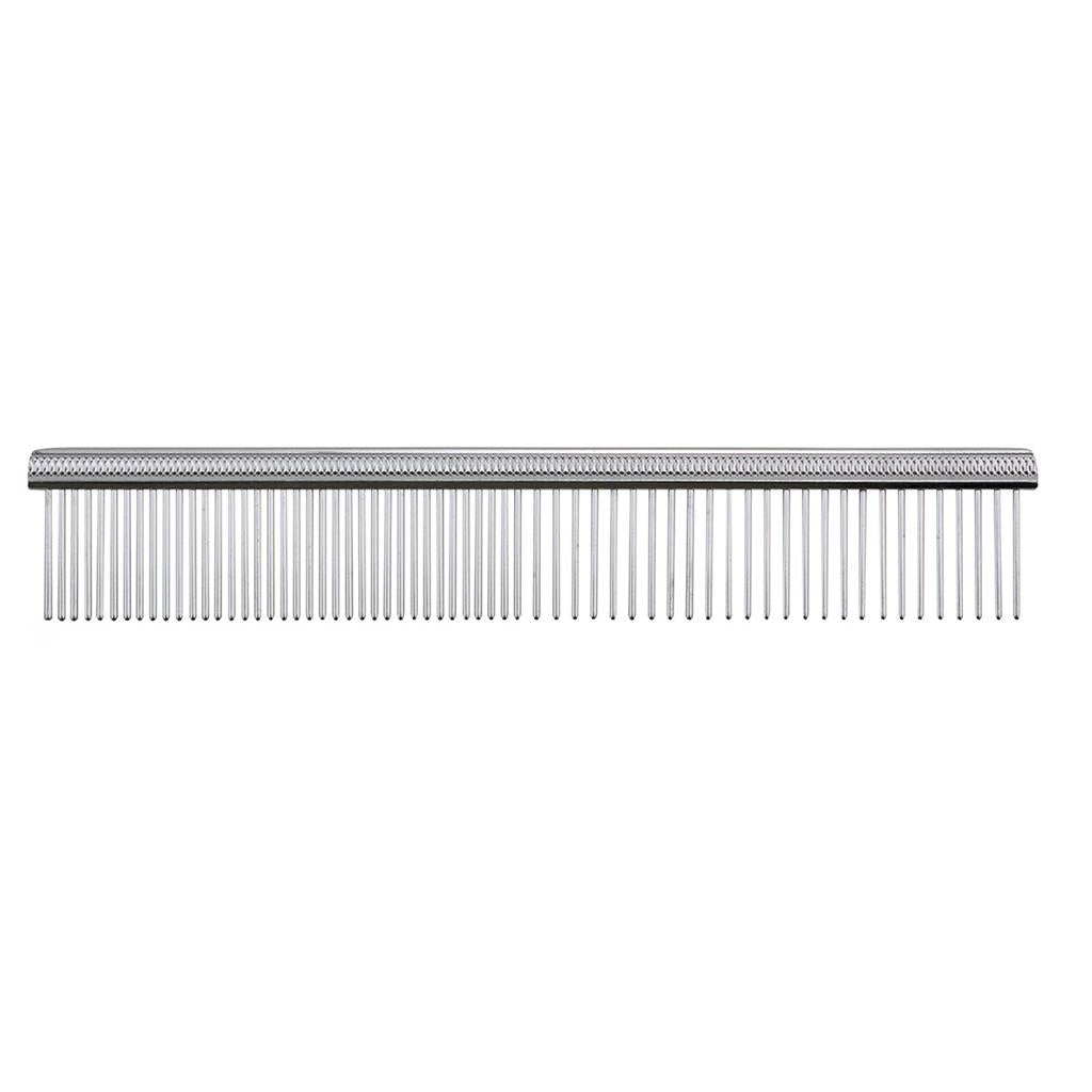 This 7" Paw Brothers Greyhound Chrome Finish Comb has a brass handle with fine/coarse round tip stainless steel pins that glide easily through the coat. This comb works great for fluffing, detangling and removing dead hair from medium to long hair dogs and cats.