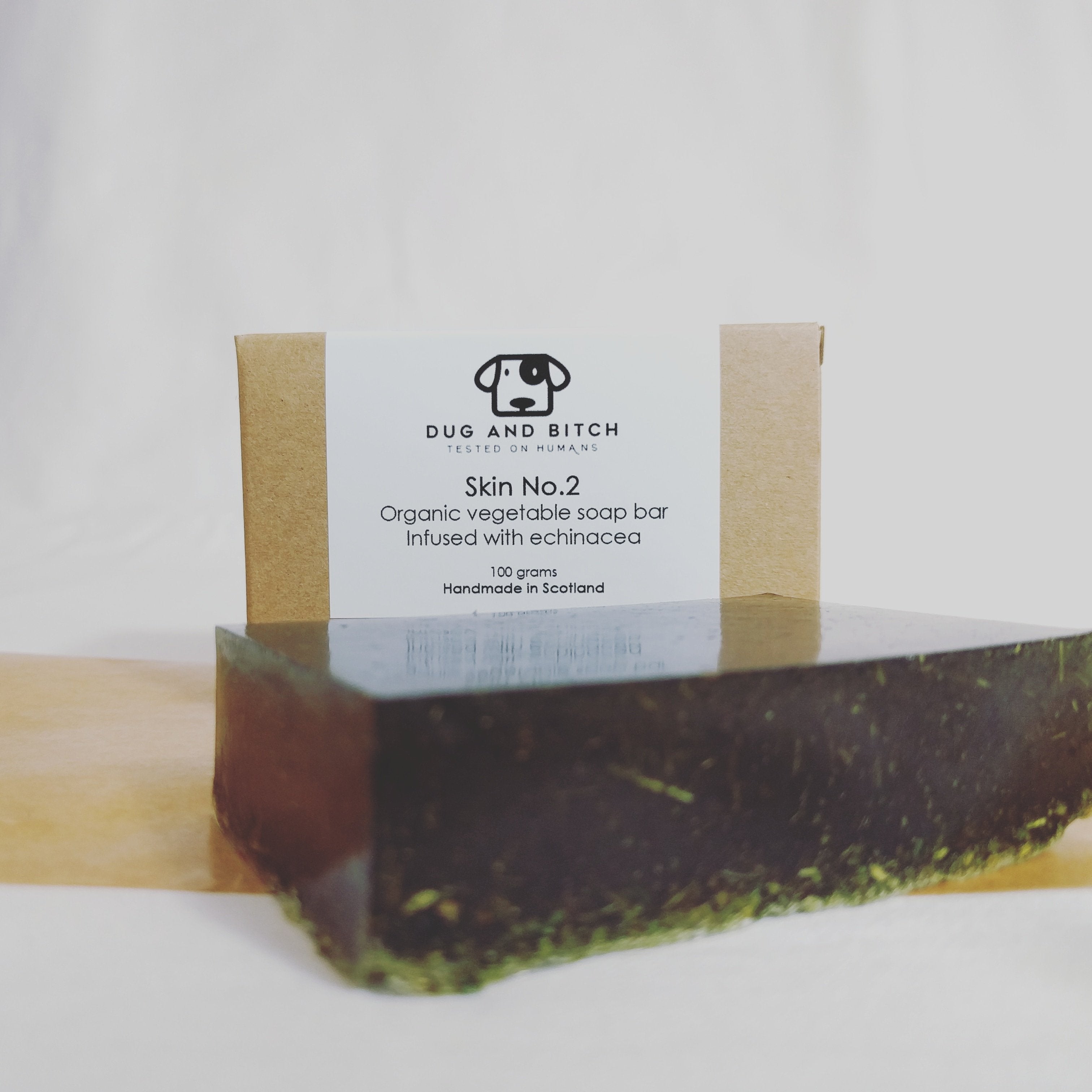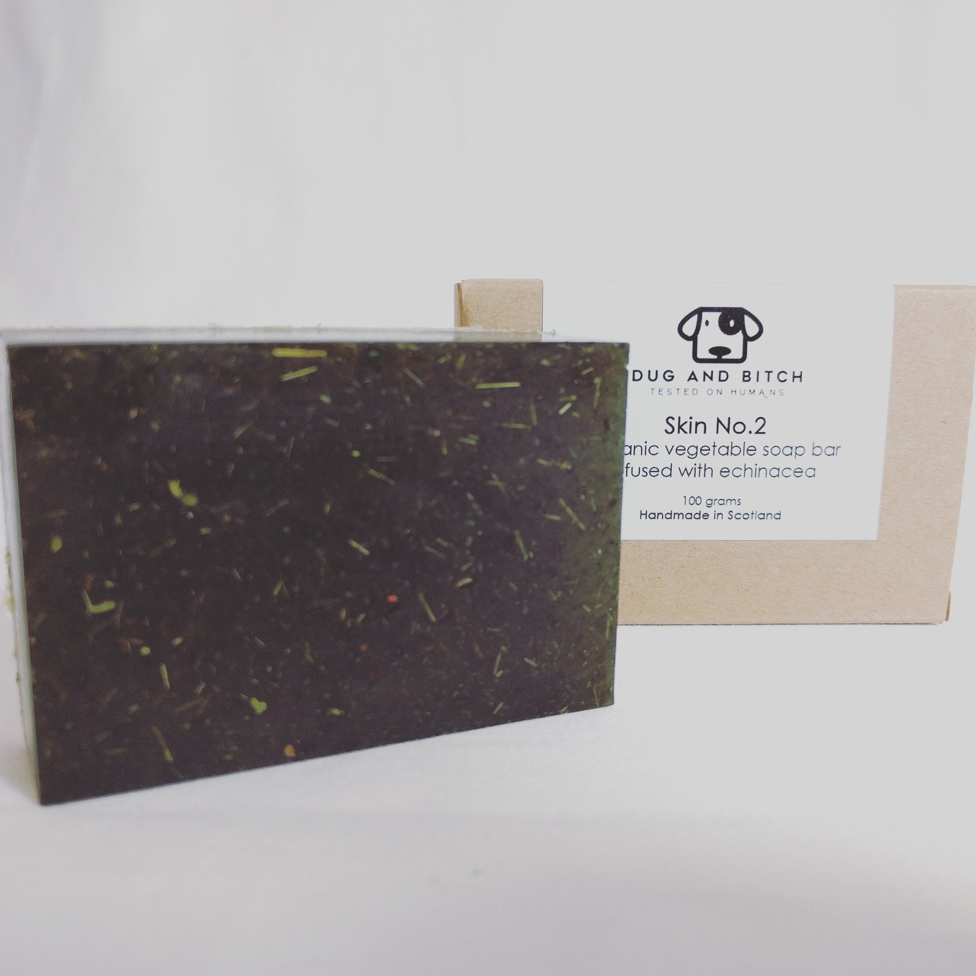 Skin No.2 certified organic to COSMOS standard, vegetable and sugar based soap infused with natural echinacea, our soap has a wonderful lather and moisturising to the skin, echinacea renowned for its natural anti-bacterial and protected from environmental stressors, perfect for all skin types and help you through the stresses of the day.