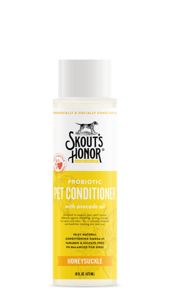 Gently moisturize and nourish your furry friend’s skin and coat with Skout’s Honor Probiotic Pet Conditioner! This probiotic formula is specially made with avocado oil and coconut oil and is designed to improve your pet’s skin and coat by combating shedding, dryness, itching, hot spots and odor. This 98.5% natural conditioner is paraben-free and sulfate-free, PH-balanced for dogs and contains conditioning omega-3s leaving fur silky and smooth. Restore the balance back into your pal’s skin and coat the eco-friendly way with Skout’s Honor!