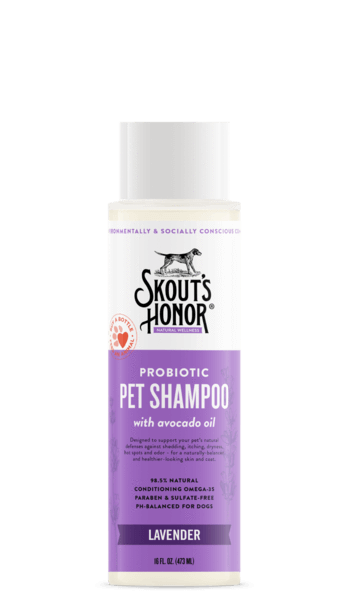 Gently cleanse your furry friend’s skin and coat with Skout’s Honor Probiotic Pet Shampoo! This probiotic formula is specially made with avocado oil and is designed to improve your pet’s skin and coat by combating shedding, dryness, itching, hot spots and odor. This 98.5% natural shampoo is paraben-free and sulfate-free, PH-balanced for dogs and contains conditioning omega-3s leaving fur silky and smooth. Restore the balance back into your pal’s skin and coat the eco-friendly way with Skout’s Honor!