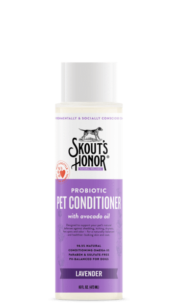 Gently moisturize and nourish your furry friend’s skin and coat with Skout’s Honor Probiotic Pet Conditioner! This probiotic formula is specially made with avocado oil and coconut oil and is designed to improve your pet’s skin and coat by combating shedding, dryness, itching, hot spots and odor. This 98.5% natural conditioner is paraben-free and sulfate-free, PH-balanced for dogs and contains conditioning omega-3s leaving fur silky and smooth. Restore the balance back into your pal’s skin and coat the eco-friendly way with Skout’s Honor!