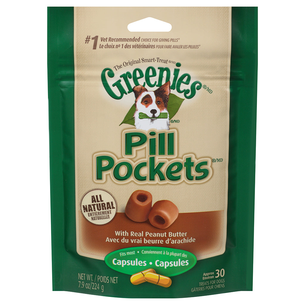 Pets are smart about avoiding their meds, but you're smarter. Designed and recommended by vets, GREENIES™ PILL POCKETS™ Treats for Dogs make it easy to give your dog medicine. Don't hide medicine in human foods, such as peanut butter or cheese. Give a healthy, low-calorie dog treat instead. GREENIES™ PILL POCKETS™ Treats take the stress and mess out of administering capsules or liquid medication to your dog. These easy-to-use pouches mask the smell and taste of medicine and deliver a delicious chicken flavor your dog will love.