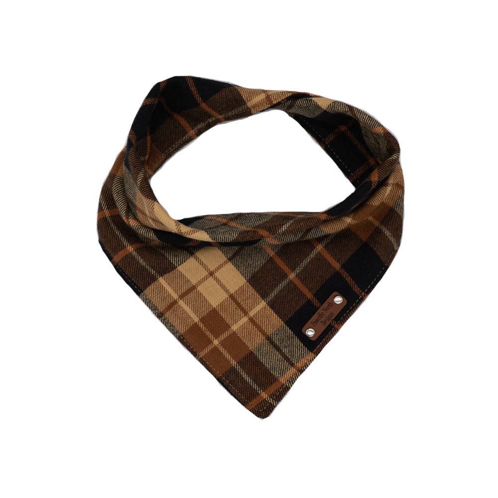 Stay warm in style with the Sawyer Snap on Bandana. This flannel fabric accessory is designed to snap on securely and comfortably, making it perfect for chilly fall days. Dogs will love its design too, so your pup can keep up with the latest autumn trends. Each bandana comes with 3 metal snap buttons and finished with our faux leather tag. Material: 100% Cotton flannel