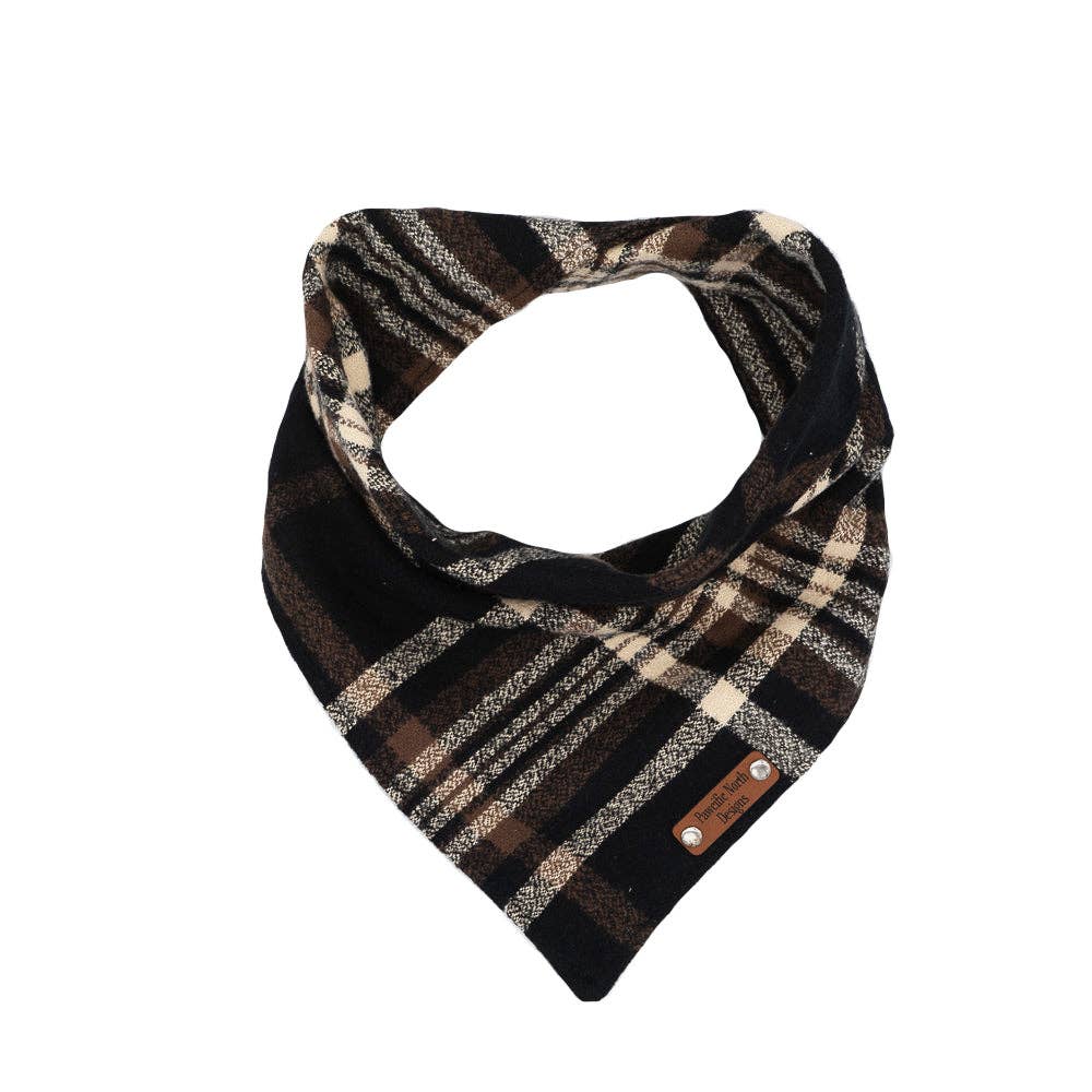 Stay warm in style with the Scarlett Snap on Bandana. This flannel fabric accessory is designed to snap on securely and comfortably, making it perfect for chilly fall days. Dogs will love its design too, so your pup can keep up with the latest autumn trends. Each bandana comes with 3 metal snap buttons and finished with our faux leather tag. Material: 100% Cotton flannel