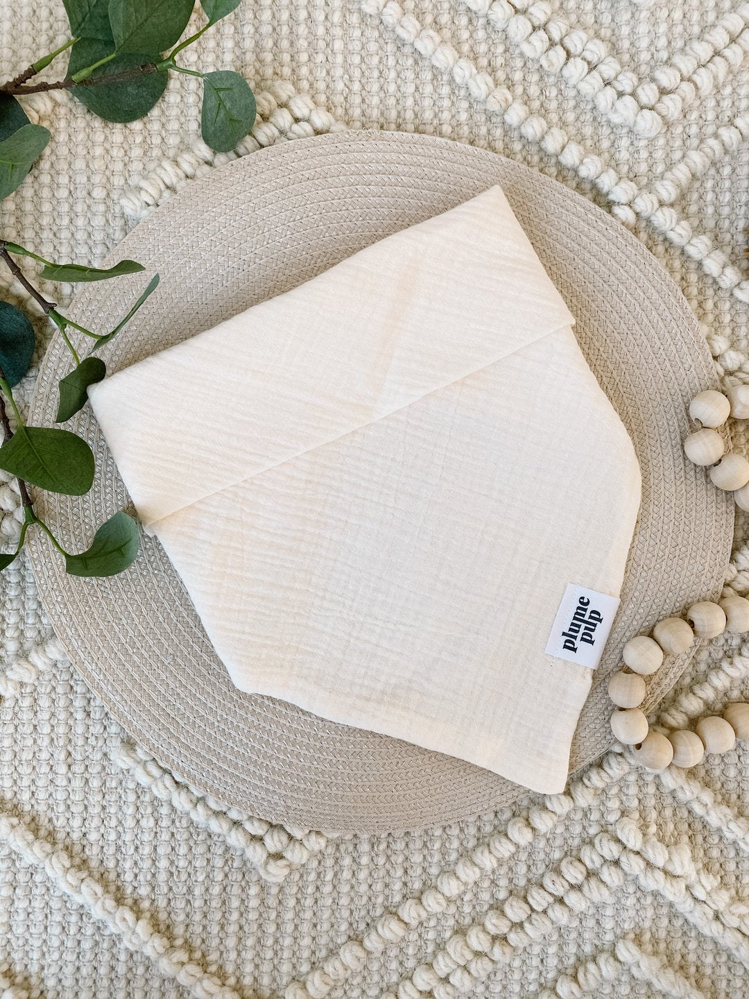 Bandanas are triangle in shape allowing for a comfortable fit for your pup and are designed to tie once and then snap! There are two white snaps added on to the end of each bandana! We recommend measuring your pups neck with a soft measuring tape and following the size guide below before ordering!